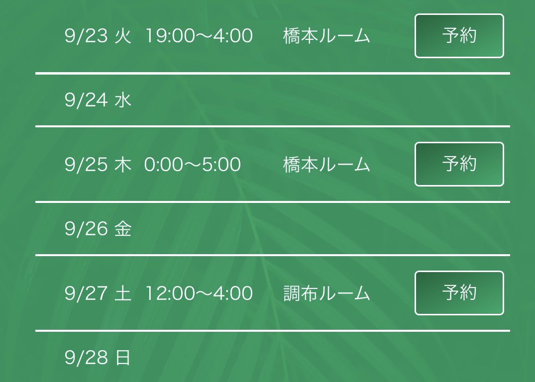 9月20日(土)橋本ルーム12:00~20:00