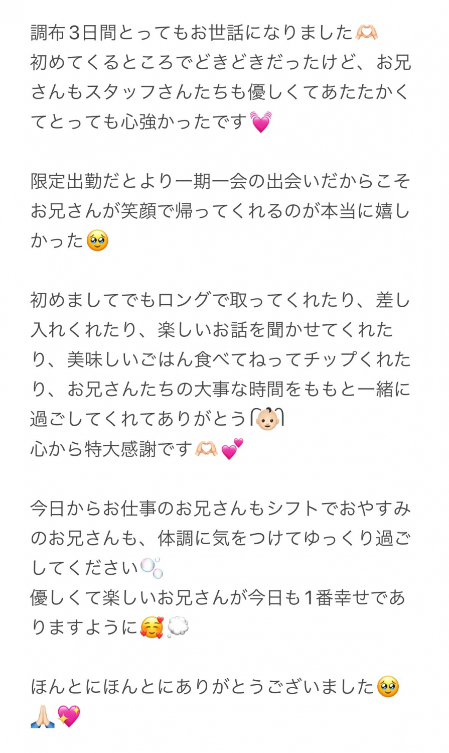 初接客のお兄さまに最高に気持ちよかったとお褒めのお言葉いただけてとっても嬉しかったです💗